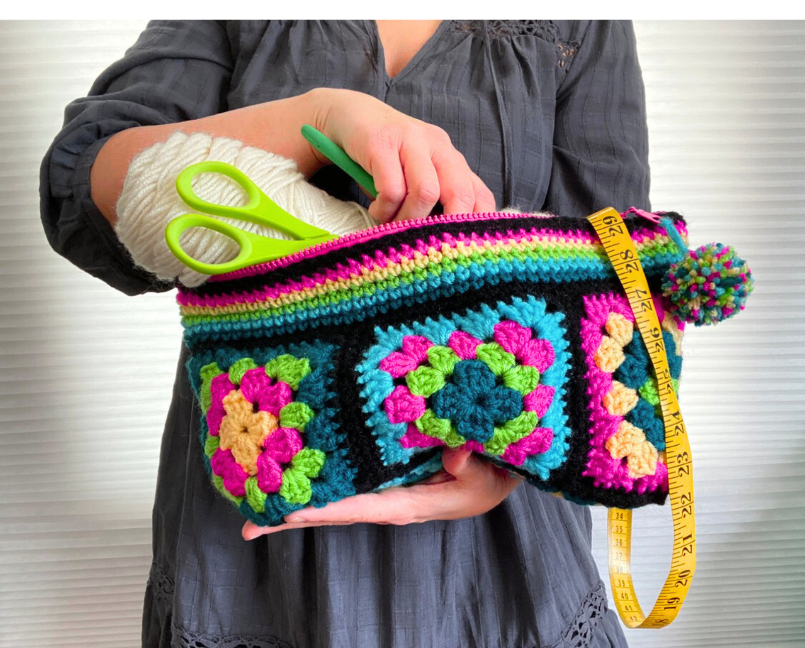 CROCHET PATTERN – Zayna bag Crochet Pattern – Granny Square Bag for Yarn, Crochet Hooks & Craft Storage – bag project – crochet bag